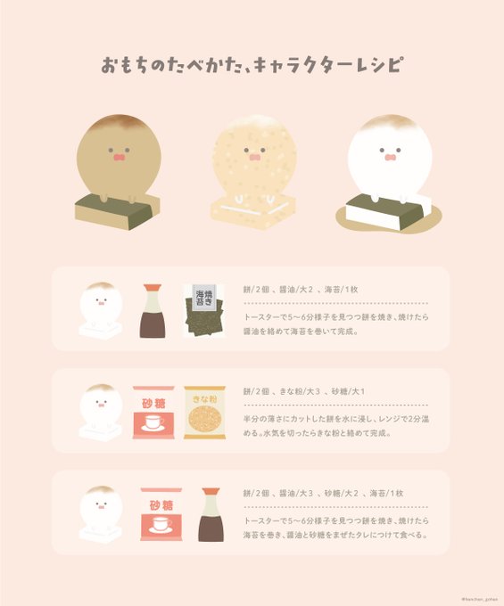 #キャラクターレシピ #イラスト #もち #お餅 #餅の食べ方