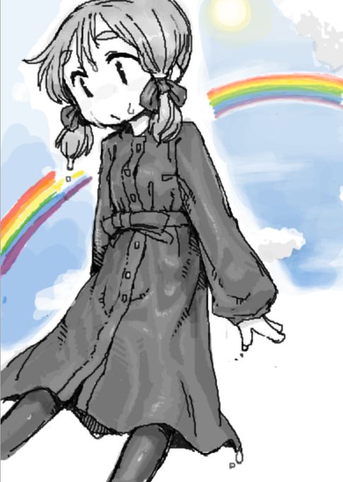 ぼんやりかいてたら別の方が後ろに虹を描いてくれました やっぱ背景あるとええな・・・・