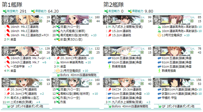 @Ren_SG 旗艦ネルソン三番五番艦に火力高い艦を配置したら、第二警戒航行序列(通常艦隊は複縦陣)を選んで戦闘開始すると、こう