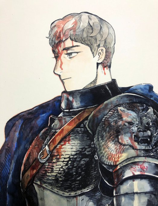 <마귀> 작업 때도 그랬지만 <결혼장사>도 이미지를 잡아보려는 그림을 그렸어요. 원작삽화의 백작님처럼 장발을 고려했다가 마님과의 나이 차가 조금 덜 해보이는+군인같은 이미지로 이미지를 잡았습니다. 그래서 초반 설정용 그림에서는 머리가 훨씬 짧았습니다. 갑옷 무슨일...