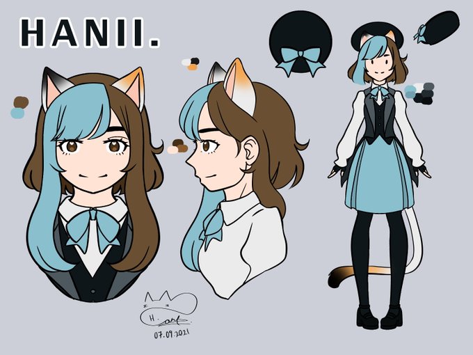 here's the concept/reference sheet of my model, this was done a while back (as you can see the date sjsjsjs) so the colours may be a little different from the actual model I'm using😅