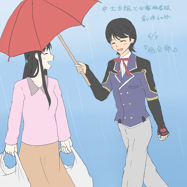 @tkhime_TL 堀さにで相合傘 主さんを迎えに来た堀川くんのイメージで #土方組と女審神者版創作60分