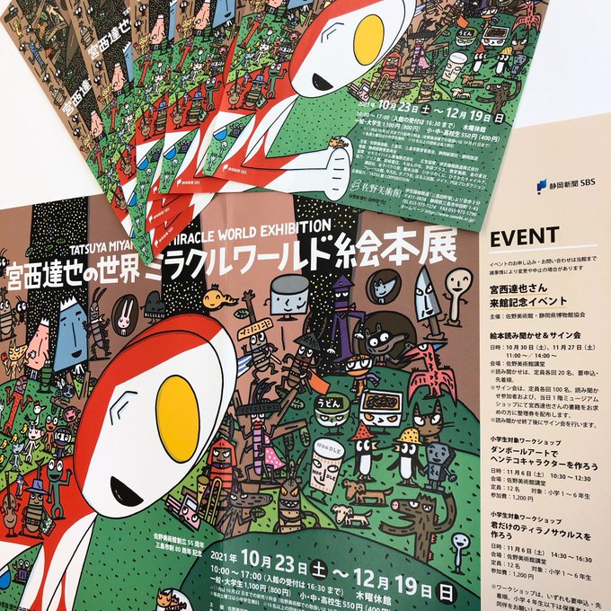 〈ご紹介〉 #三島 市の #佐野美術館 様より、次回 #展覧会 のポスターとチラシをいただきました!ありがとうございます。 ----- 《 #宮西達也 の世界 ミラクルワールド #絵本 展》 会期:10月23日(土)〜12月19日(日) 会場:佐野美術館 @sanobi_koho -----