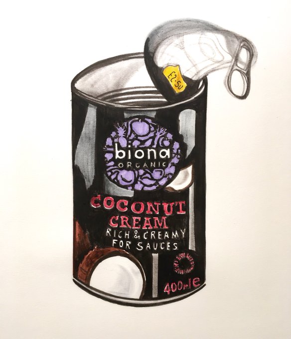 ...and a #drawing pen #sketch of a very important #ingredient in my #coconutcream for a #vegan #glutenfree #cake creation I concocted using @BionaOrganic for the #coconutcream #veganhour @veganhour