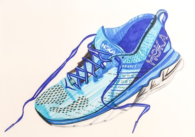 With two weeks to go till @ChiMarathon my @HOKAONEONE #trainers are getting ready for their journey! @KuretakeZIG_USA freehand #pen #drawing to reflect