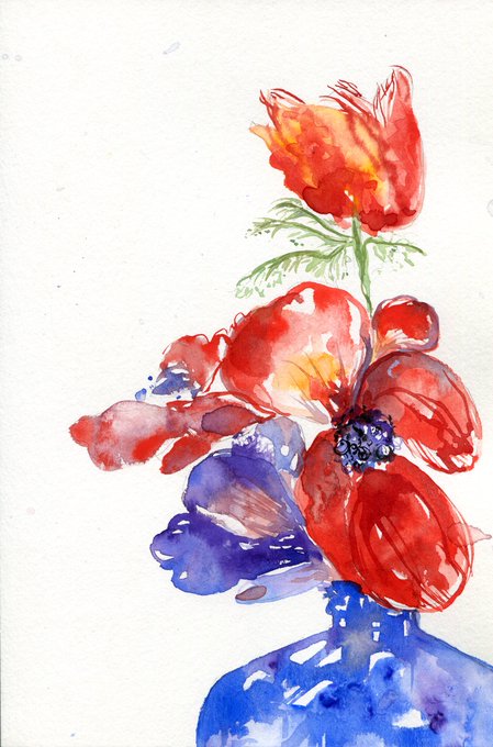 Just in case you missed it. Blue bottle floral. #art #watercolour #stillife