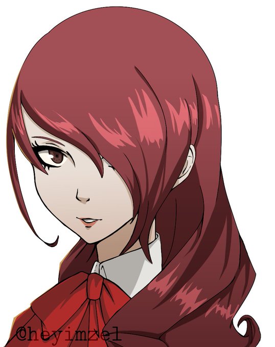 Right I never shared these here but I re-did Mitsuru's portrait in the P5 style and in HD