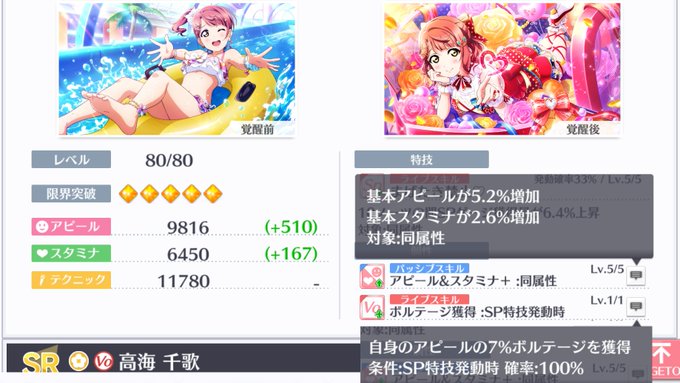 イベ穂乃果がかなり優秀。ややアピール強化が弱くされているが、バックでは強い方の四天王に次ぐか同等の地位。仲間小安定。