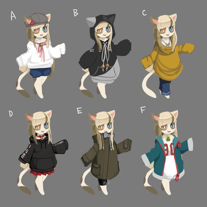 魚浦さんからきなこちゃんの新衣装のラフが来ました! どれも最高でめっさ悩む!