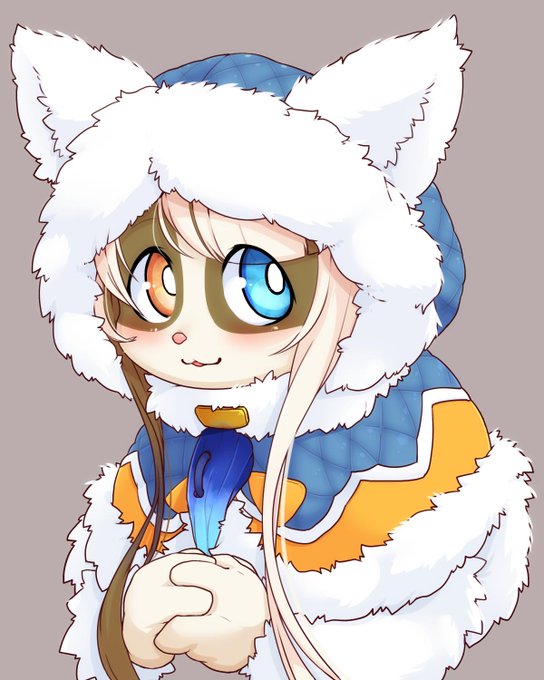 MHWのオトモカガチ装備を着たきなこちゃん! (@tokumori_kaisen )さんにコミッションで描いてもらいました!