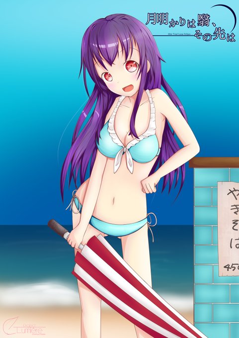 去年製作したゲーム『月明かりは翳、その先は』の水着販促イラストを発掘したぞ! 去年の絵と今の絵、結構違うなぁ……1枚目がナギちゃん、2枚目がアオイちゃんです!