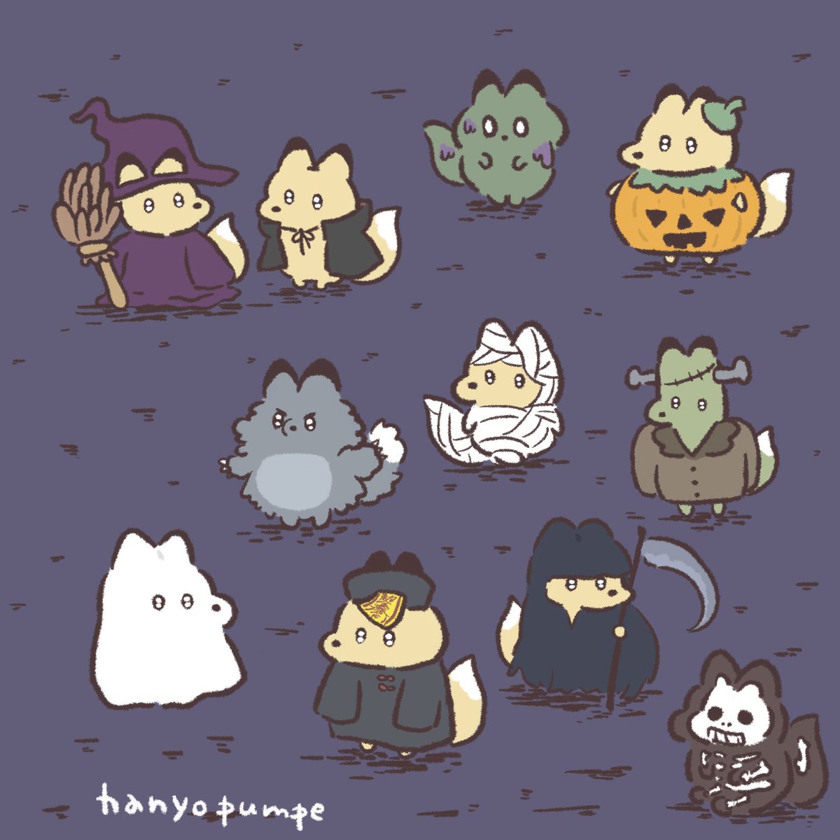 仮装する狐たち🦊 #イラスト #illustration #ゆるいイラスト #狐