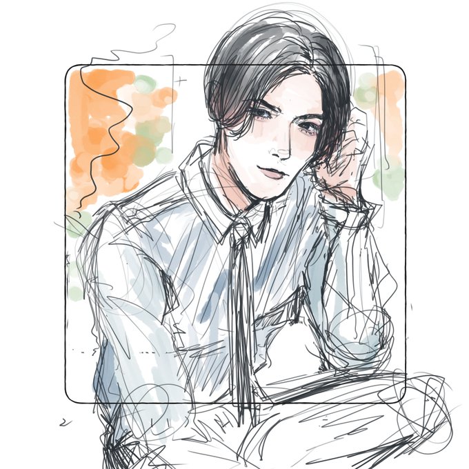 5.ガッサガサの線が好きなので(+清書嫌い)ラフ状態のをある程度整えてそのまま色塗り始めちゃう😄 私が上げる絵の大体がそれなのでこの線何?ってやつが基本いる