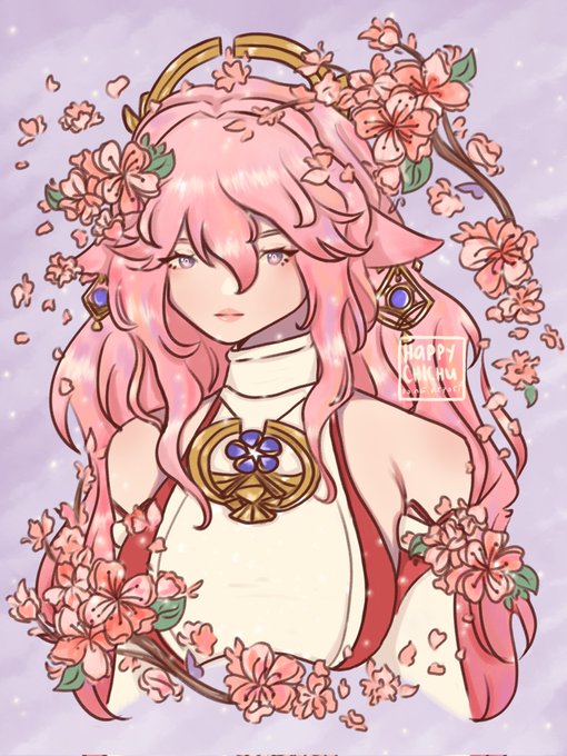 yoimiya with her hair down and long too😳 #yoimiya #GenshinImpact