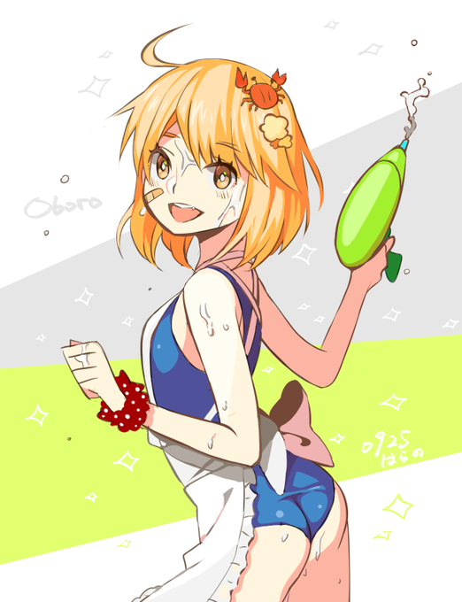 #艦これ版深夜の真剣お絵描き60分一本勝負 #艦これ版真剣お絵描き60分一本勝負_20150925 スク水メイドの朧ちゃん 遅刻ですみません