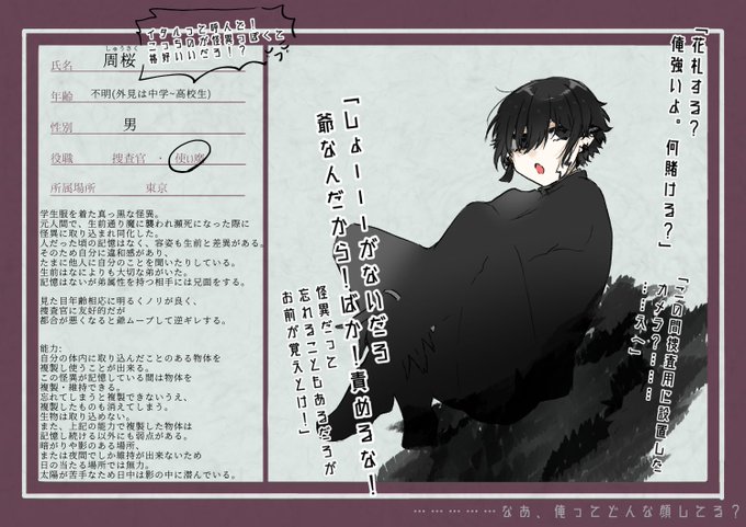 @mimizuku_TL ※修正したので再掲 こちら【@mimizuku_TL 】の素敵な企画に失礼します お茶目でノリがいい、お兄ちゃん怪異です ご縁がありましたら遊んでいただけると嬉しいです!よろしくお願いします☺️ 不備等ございましたら教えていただきたいです🙏🙏 #木菟_CS #木菟_使い魔 #木菟_東京