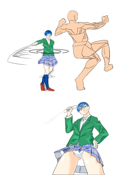 古武術だと体の軸をぶらさずに斬るらしいので、左をボツにして直したのが右だけど・・結果どうでもよかった。 かかった時間だけが無駄だった。