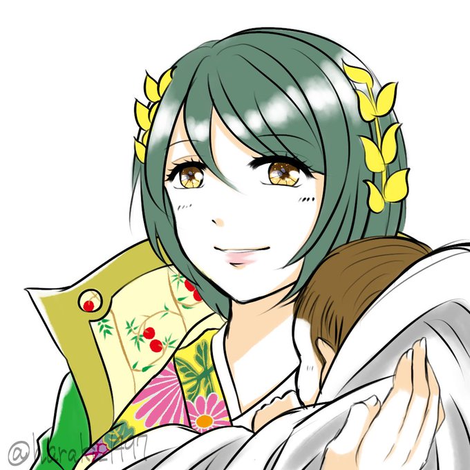 赤ん坊を抱いて微笑んでる督姫。列伝セリフから家族に囲まれる幸せな母親というイメージで^^