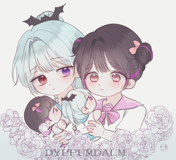 커미션 도착한거 보고 가세요 아 진짜 귀여운거봐 얘네 서로 인형 들고있어