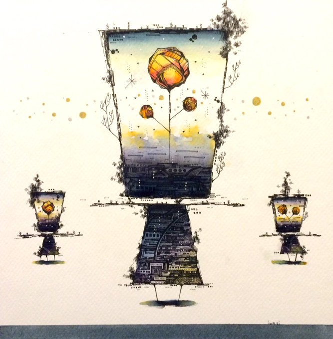 夜をテーマにしたドローイングを描いています。
