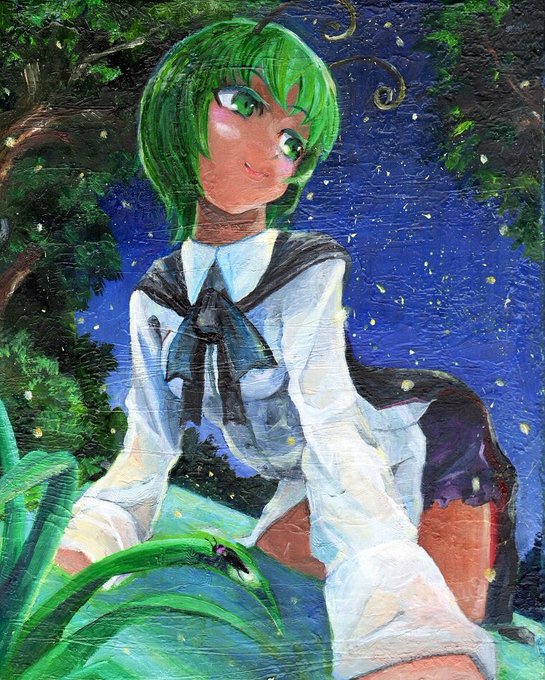 ルーミア チルノ リグル 油絵で描きました。明日の想七日で展示販売します。 お立ち寄りの際は見に来てね!