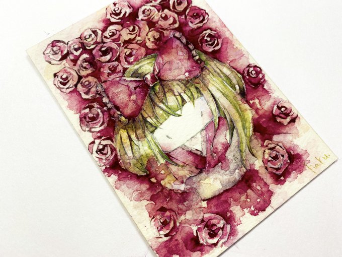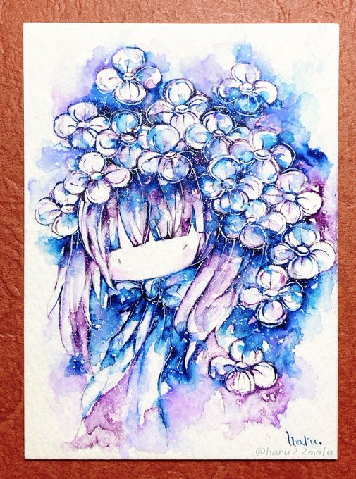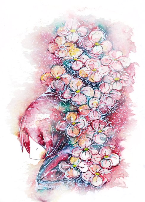 #どうやって描いてますか見た人もやる ①線画はシャーペン0.3で描いてます ②下塗り水彩絵の具 ③塗り重ねていきます ④完成 ATCワトソンボード