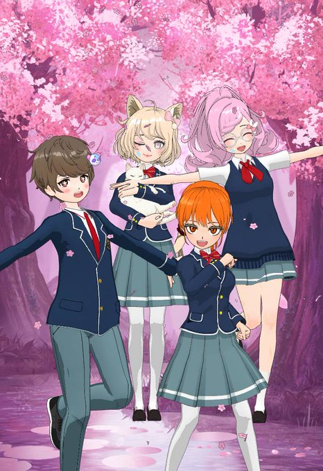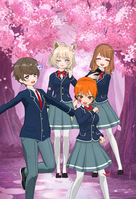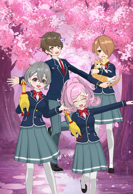 みんなそれぞれ新しい入学先の制服で記念撮影