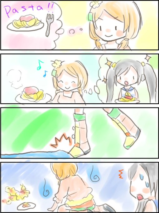 足元から食べると照れるというよりいつ食べられるか見えないから怖くてガクブルだと思うのででんコロネになったレンとそれを食べるるる描きました。 #でんコロネ