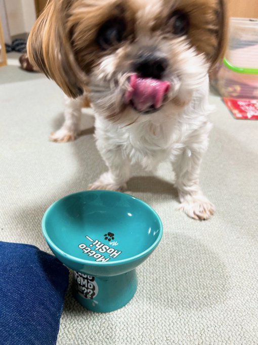 完全にペコちゃん顔の犬