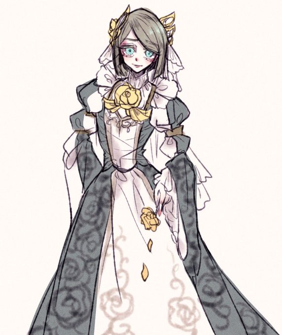 狩人、貴婦人、鳥をイメージしてデザインしました。外套やコルセットで体格をカバーしつつ動きやすい戦闘服としてのドレスが普段の衣装。狩人と貴婦人要素である羽根帽子、宝石のついたクラバットで高貴な印象を心がけています。