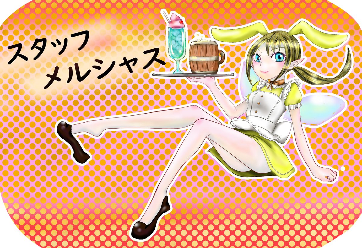 ミニスカBarイラストです。 スタッフのメルシャスだよ! とってもオシャレさんでいつもいろんな衣装で皆様をお出迎えしてくれます。 #ドラクエ10 #イラスト