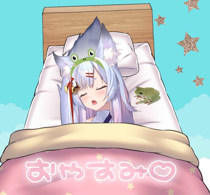 平常都是早安呱呱、 今天來個晚安呱呱好了🌸 各位晚安呱呱🐸🌸 要有個好夢喔⭐️☁️ 被大家看到狐睡覺的樣子了呢…。