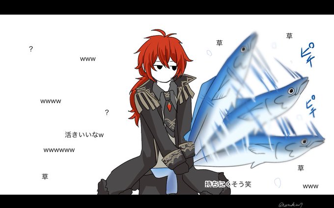 #ディルック勧誘シリーズ その8(8/30) 旦那持ってないのにマグロ持たせる気は満々なんだよ #原神 #GenshinImpact