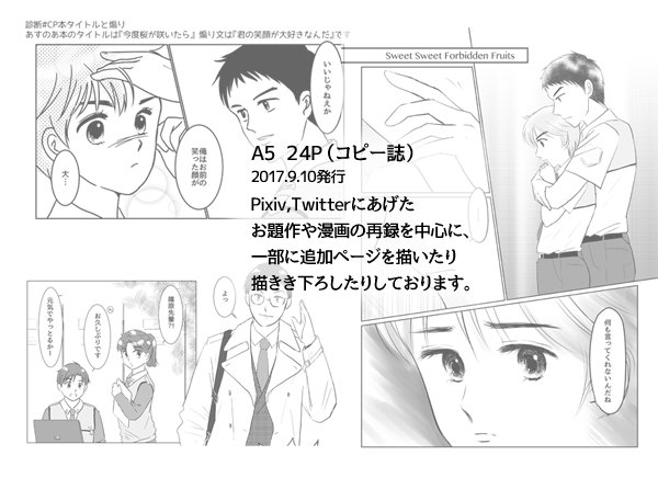 拙作お手にとって下さった皆様、ありがとうございました!次は手探り突発じゃなくて、もうちょっとちゃんと整えたいです…(希望だけは!)。いずれまた目にする事がありましたらよろしくお願いいたします。 #あすのあゼロ距離の会