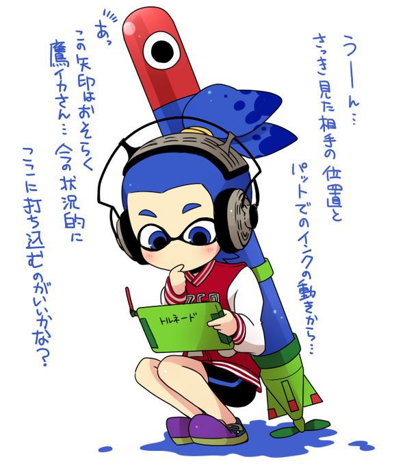@hm_ik3 穂海さんの所のアオくんを勝手に描いてしまいました 自分の一番最初に作ったイカがアオっていうローラーイカがいたので 一緒に描いてみたかったのです(^_^;)