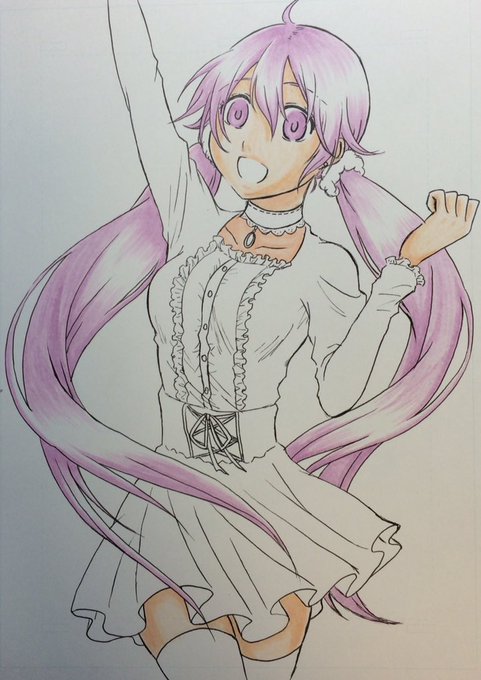 先月コピック体験イベントに行った時の。 ただでさえコピック下手なのに時間無くて髪は一色しか使えなかったし肌はコピック掠れてて途中で同じ番号の探したら違う色にキャップだけはまってて一部違う色になったしでひどい状態( ´・ω・` )
