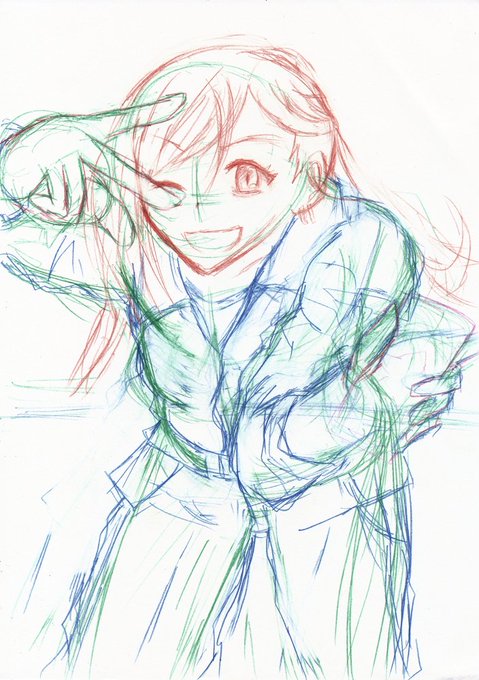 去年の夏ごろに身内でやった、「ラフ」「線画」「着色」を別の人がやる遊びの、俺がラフを担当したやつ。のさらにアナログver