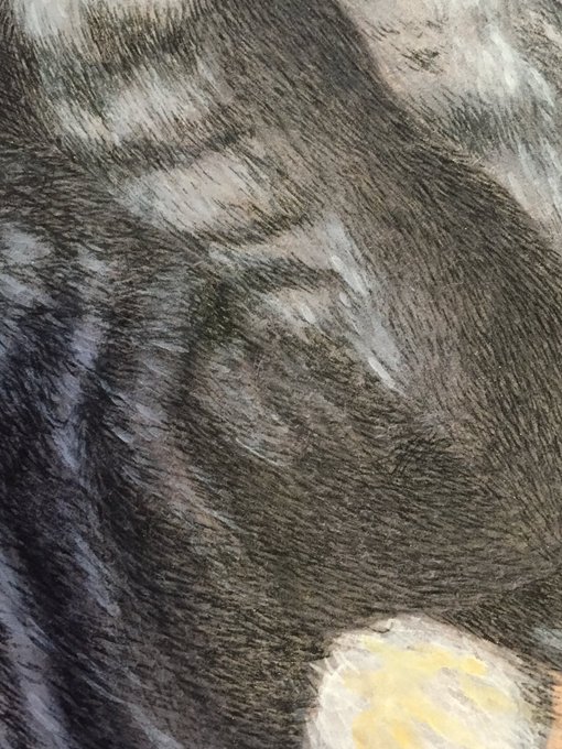 その名の通りきらきらさせてます、日本画らしく(?)金泥を使いたいなと思って制作しました。下の部分もわりと光ったりしてるんですが、角度によって見え方がだいぶ違うことに気付きました…