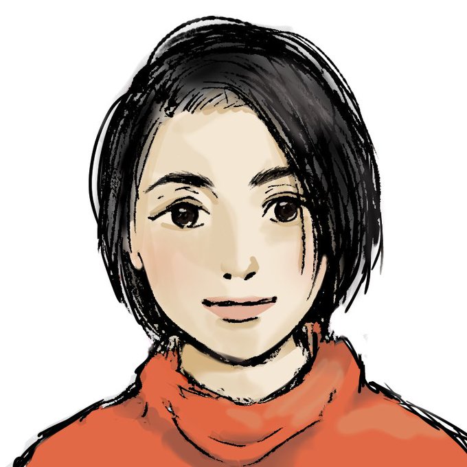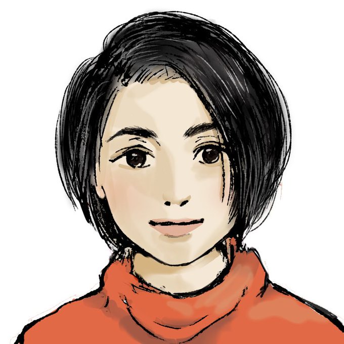 頼まれて、母の似顔絵を描いたんだけど、髪の毛のトップをもう少しボリューム出してと言われて変化させたら、ウィッグの宣伝ビフォーアフターのようだ…