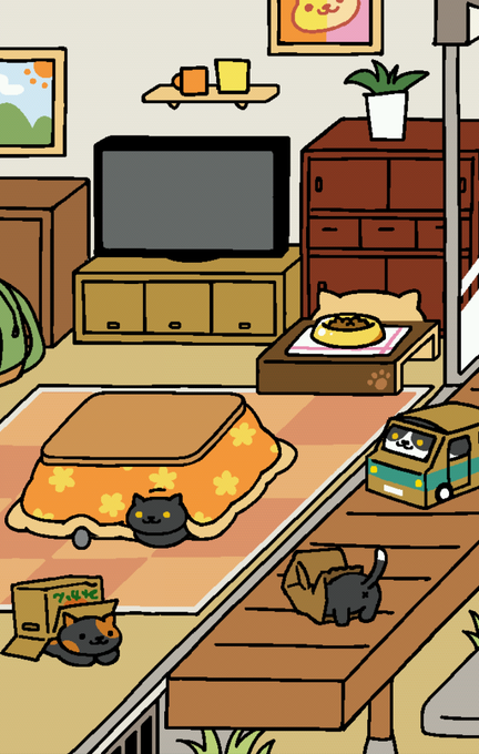 おや、黒っぽいにゃんこ集会かい、と思ったけどこたつに入ってるのぽいんとさんだったわ。