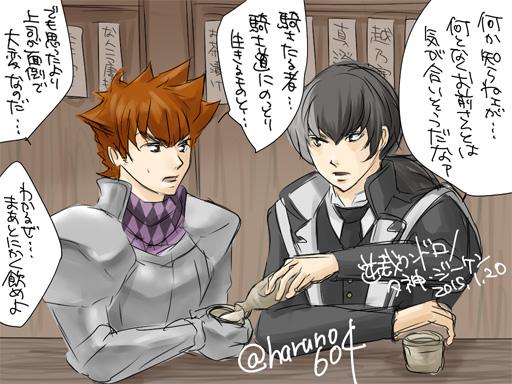 逆裁ワンドロ初参加!この二人を選択した時点で間違えたような気もするけど…案外気が合いそう?取りあえずここの居酒屋の客になりたい。世界観崩壊すみません。 #逆裁版深夜の真剣お絵描き60分一本勝負