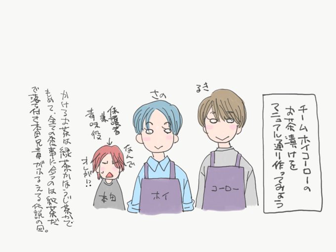 本田兄貴のアイスの写真がかわいくて思わず描いた学生OWV4人のアイス食べてるところ