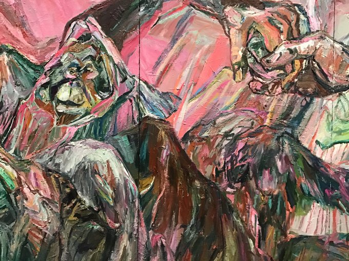 近藤さんの卒業制作と聞きました。凄いもの見ました。豪快なストロークに根源的な生命の力強さを感じました。近藤さん、学生の頃からの個性が成熟し、力のある作家さんになられました。個展が始まる前に観れてよかったな♪