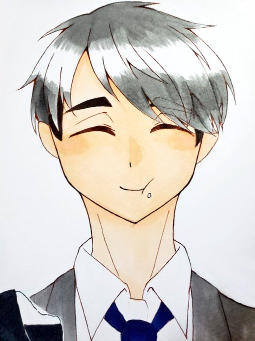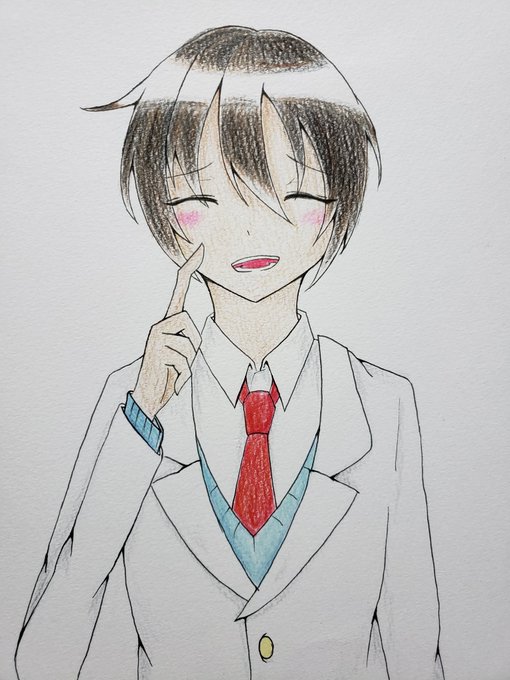 #リ氵くんが制服に着替えたら 「似合って…ます?」 タグお借りいたします 学校の制服着せたかった… 色塗ってから気づいたけどすごくキッドみたくなってるな