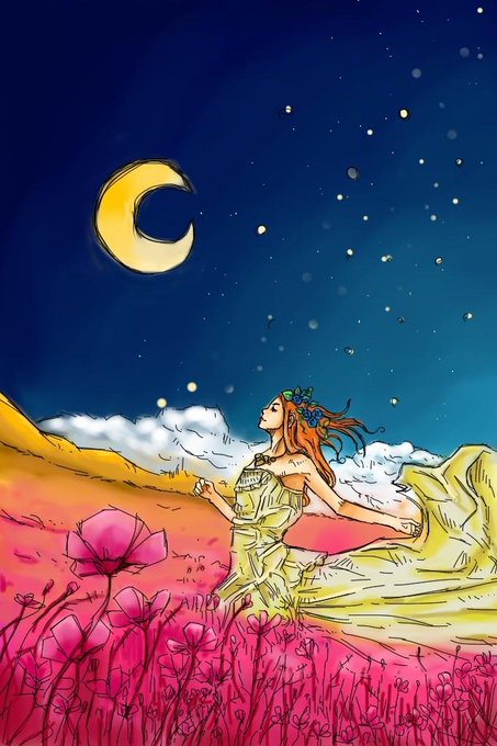 私はコスモスと、明るい夜空がとても好き。 尚、シャッターストックさんから写真を持ってきて、コラージュ下書きをして、描きました(・Д・)ノ #ioekaki