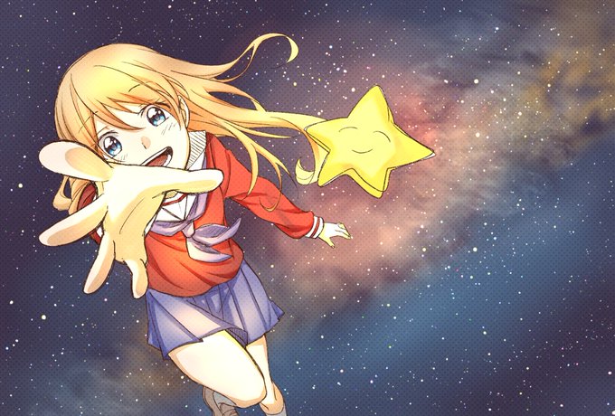 そういえば学院祭用に描いたイラスト! 黄色いのは星じゃなくてヒトデくんだよ