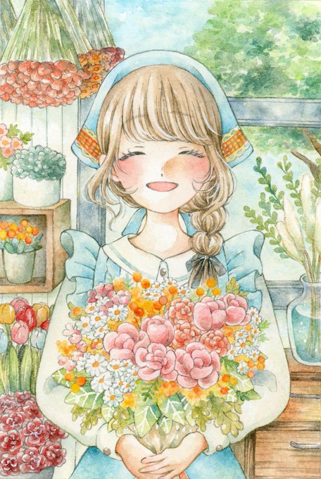 #作品をみてくださいあわよくばフォローしてください祭 透明水彩で笑顔や優しい世界観を描くのが好きです☘️
