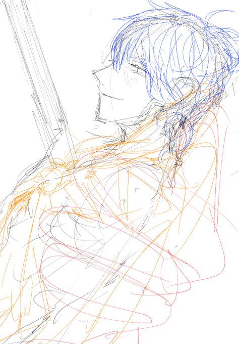 #このタグを見た人はラフ画とその完成絵を見せる 鶴さんがPCで、御前がiPadminiだったはず… ラフで色分けなんてしたことなかったのに何となく適当に好きな色でラフしてた~ 英語のテスト受けてきます~🔥