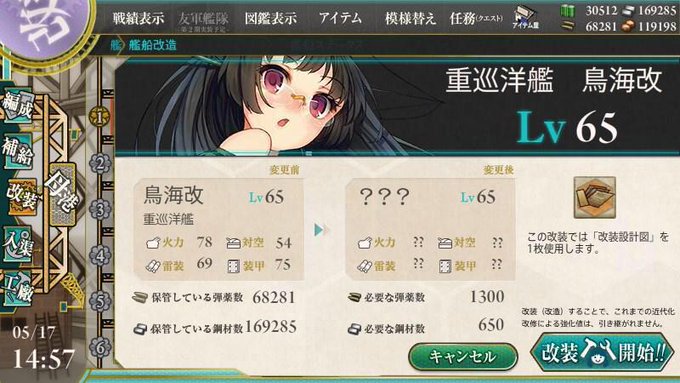 やりました。(鳥海の改二が70レベと勘違いしていた提督がいました…私でした。) #艦これ