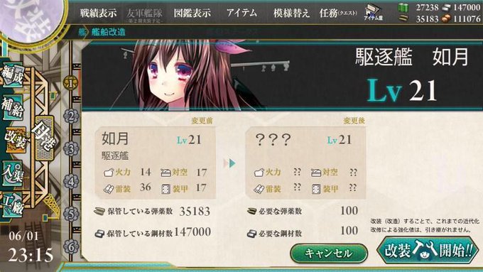 ちなみに如月さんは未だこのレベル…(´・ω・`)先が長すぎる…( ˃ ⌑ ˂ഃ ) #艦これ